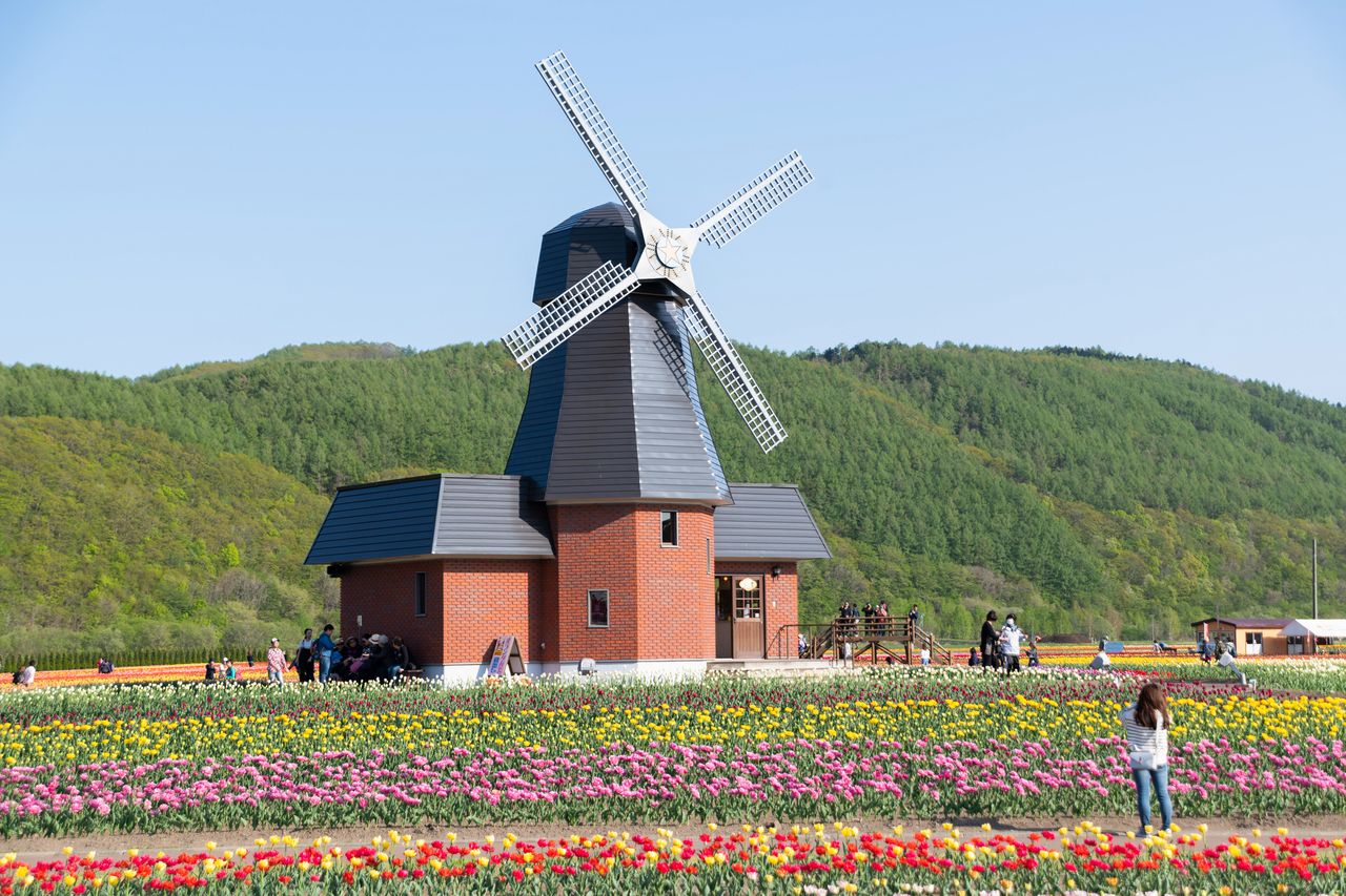 Este molino de viento de estilo holandés es el símbolo del Parque de Tulipanes de Kamiyūbetsu.