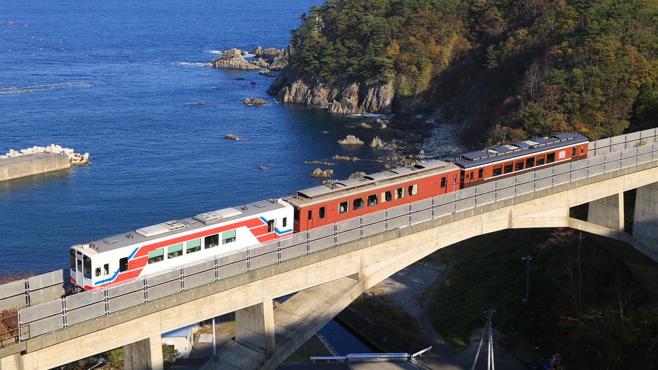 Antiguamente, la ruta del Ferrocarril de Sanriku entre las estaciones de Miyako y Kuji se llamaba línea Rías Norte. El trayecto tiene tramos de montaña y varios túneles, pero eso no les resta importancia a los múltiples atractivos de la travesía, como poder admirar la inmensidad del océano Pacífico desde puentes de 30 metros de altura. Además, merece la pena bajarse en alguna de las paradas intermedias para degustar las especialidades de la cocina local.
