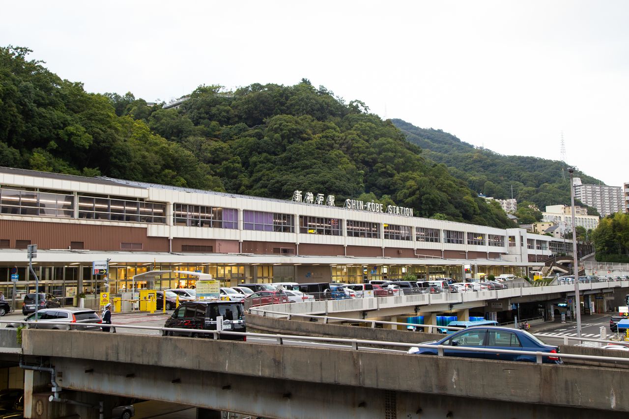 La cordillera de Rokkō se extiende a las espaldas de la estación Shin-Kōbe de JR Oeste de Japón.