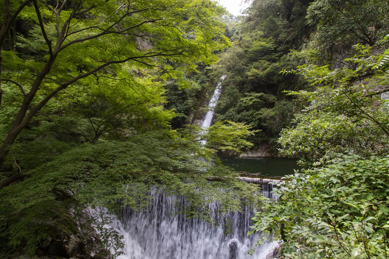 Una vista de la rebosante naturaleza que rodea a la cascada Mentaki, a solo cinco minutos de la estación del tren bala.