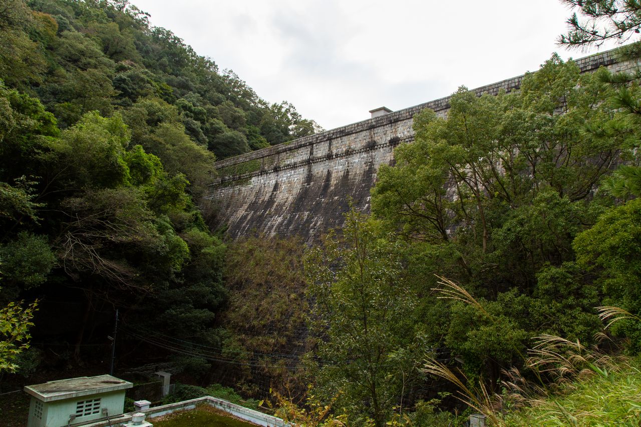 La gruesa apariencia de la presa de Nunobiki, hecha de hormigón.