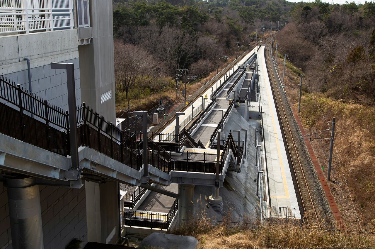 La estación de ferrocarril J-Village presenta muchas peculiaridades en su construcción que llamarán la atención de los aficionados a los trenes. Los andenes en forma de V y el desnivel de cerca de 20 metros entre estos y la planta donde se realiza el control de billetes están entre sus rasgos más llamativos.