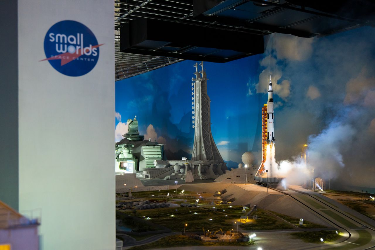 Las maquetas y miniaturas de Small Worlds no solo son muy detalladas y realistas, su movilidad y el sonido envolvente son sus características principales. Una realista cuenta atrás y el sonido explosivo de la ignición de los motores del cohete que reverbera por la sala anteceden su despegue entre llamas y humo.