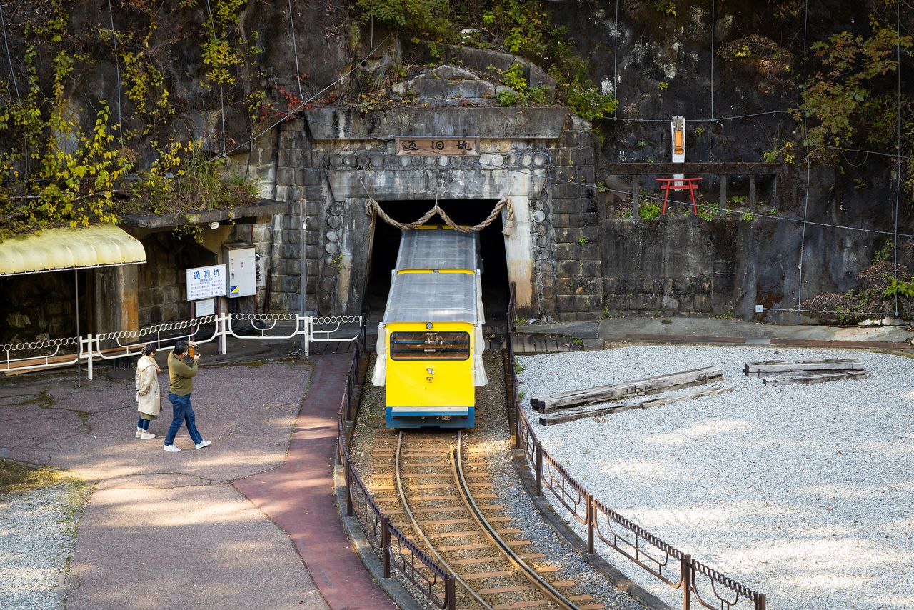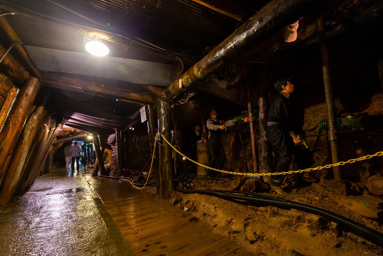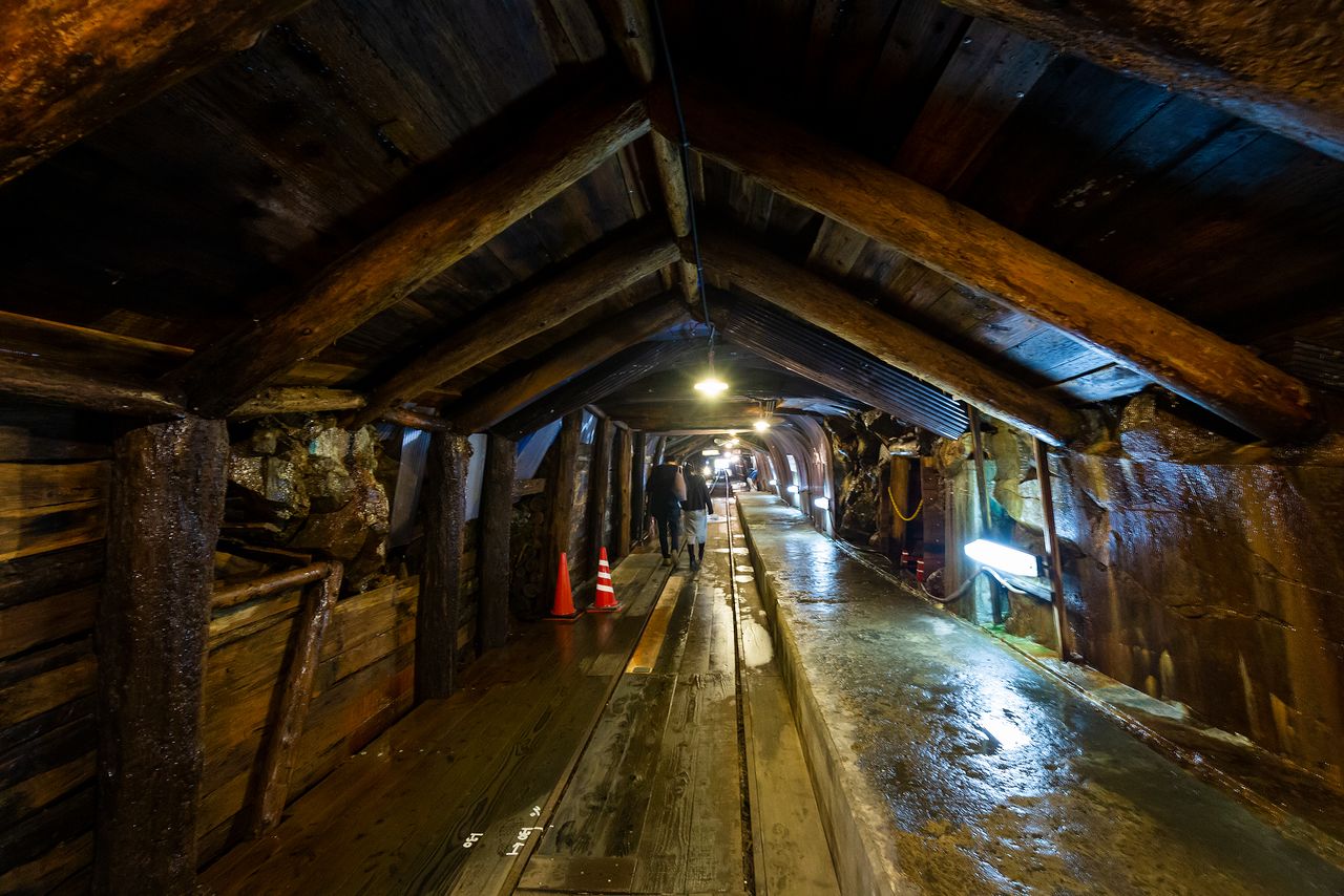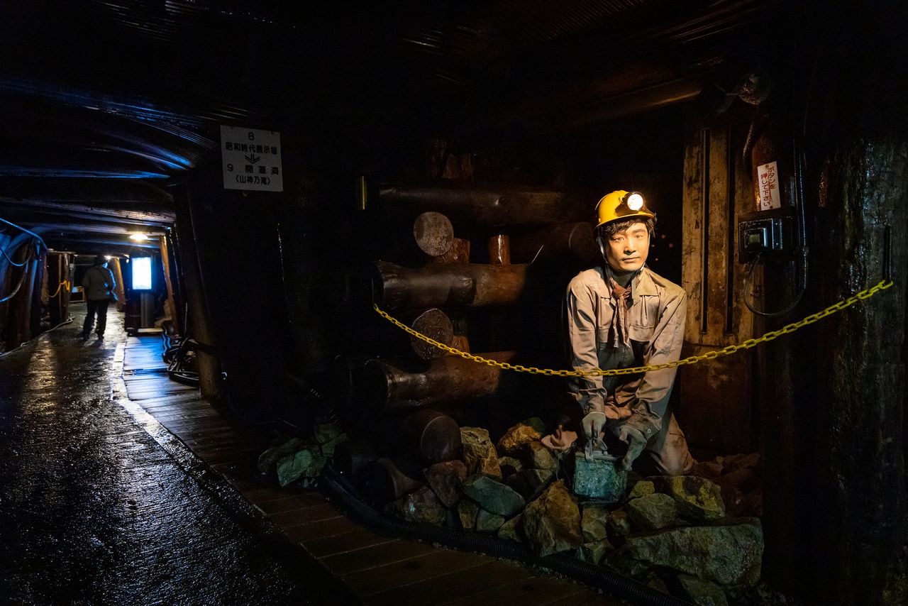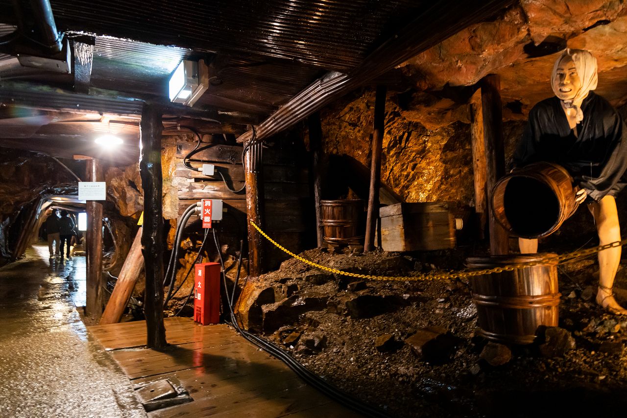 Para entrar a Tsūdō-kō, camino principal para la logística de la mina y sitio histórico nacional, hay que utilizar un tren de vagonetas. Al bajar de la estación en el interior de la mina se pueden observar varias maquetas que recrean la forma en la que se realizaba la extracción del metal en cada periodo y aprender sobre el auge y la caída de este pilar de la modernización de Japón.