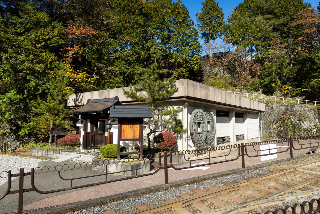 Al lado de las vías se encuentra la casa de moneda donde se exhibe una maqueta que detalla los trabajos de fabricación de monedas en el periodo Edo. El exterior del edificio está adornado con unas monedas kan’ei tsūhō con la letra “ashi”.