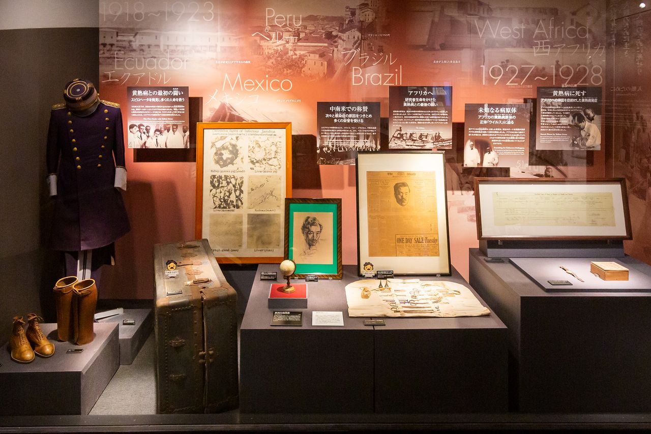 La sala de exposición está dividida en secciones como “La vida de Hideyo”, “El verdadero rostro de Hideyo” y “El laboratorio del doctor”, donde se exhiben valiosas fotografías, documentos y objetos personales.