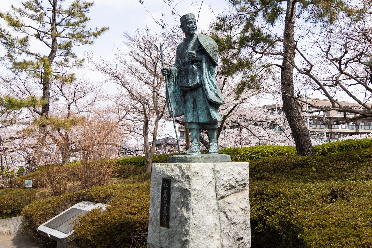 En la entrada del parque Fudaba Kashi hay una estatua de Matsuo Bashō.