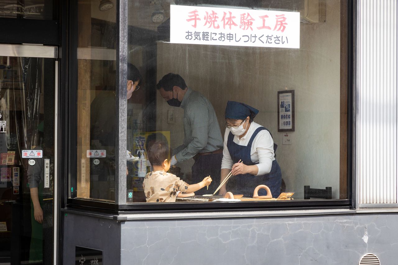 Se puede observar desde fuera cómo los clientes preparan sus propias galletas. Inmediatamente después de terminar nuestro reportaje, un niño pequeño se aventuró a intentarlo.