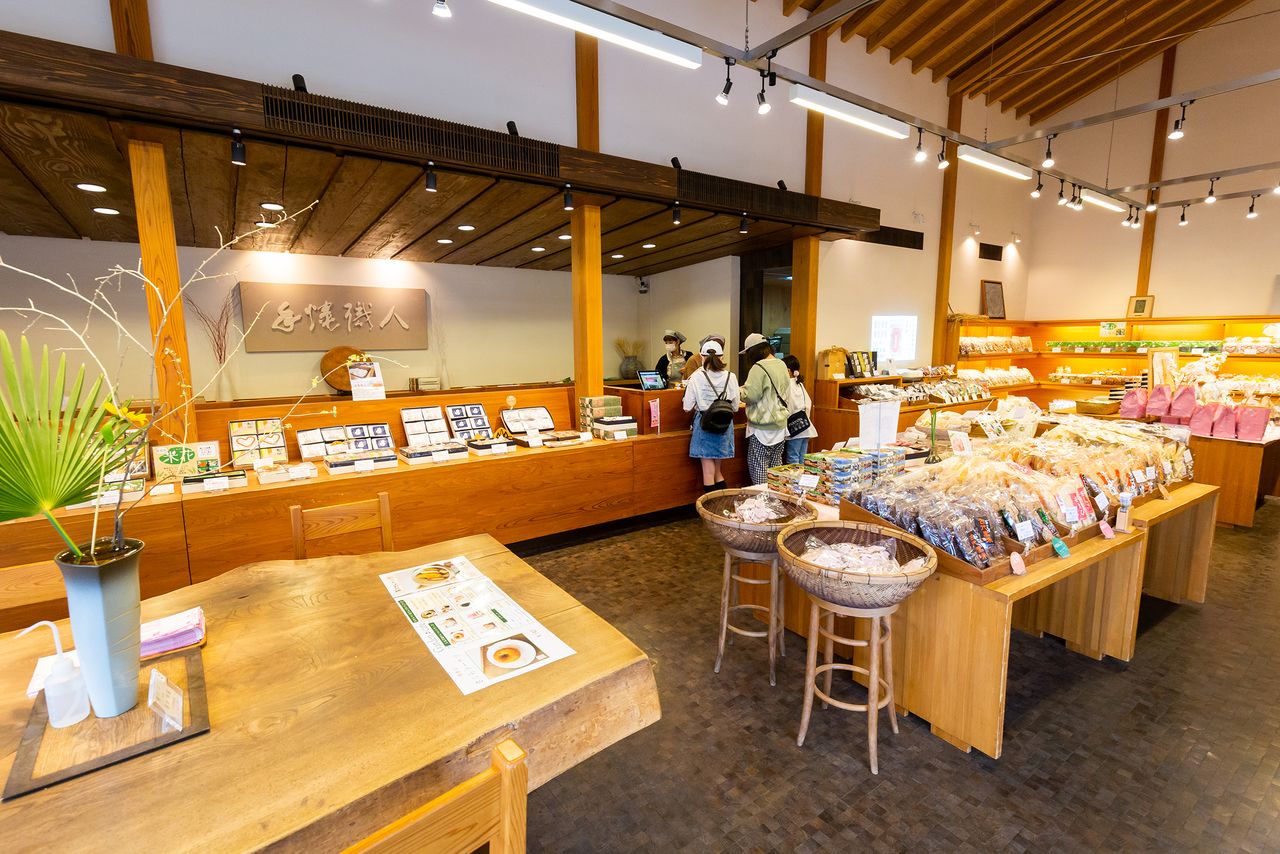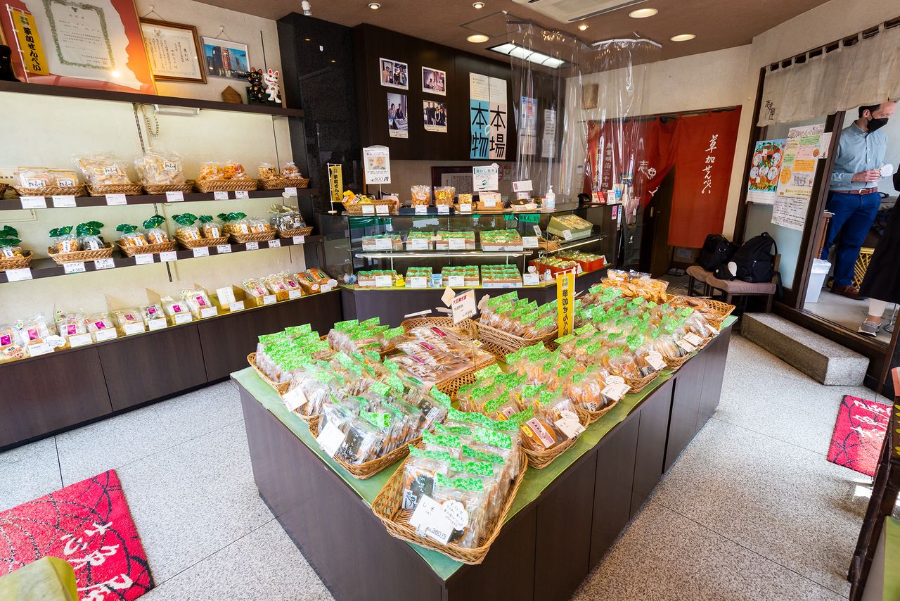 El elegante interior de Yamakō Senbei Honpo.