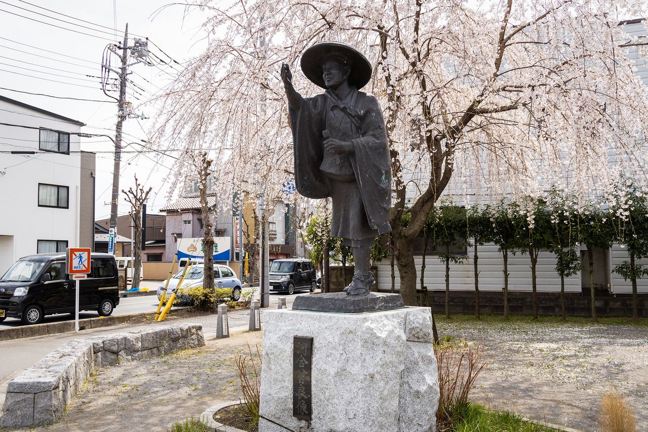 En el mismo parque también hay una estatua de Kawai Sora, discípulo de Bashō y su acompañante en el viaje por las “sendas de Oku”.