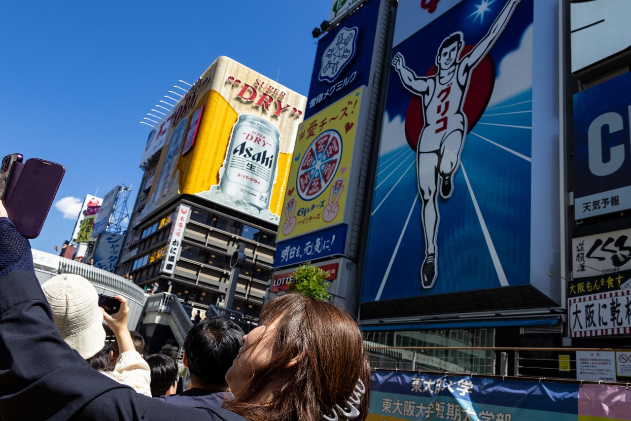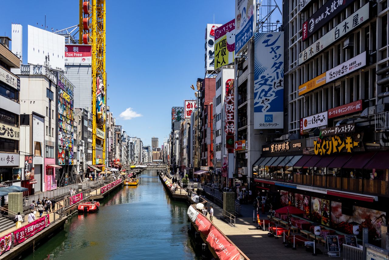 Uno de los mayores atractivos para el turismo es su gastronomía popular y barata. Muchos prueban que visitaron Osaka subiendo a las redes sociales una foto en la que se les ve comiendo takoyaki en Dōtonbori. Los impactantes carteles tridimensionales de personajes de comida son otro de los factores que hace de este lugar uno de los favoritos entre los turistas, por su fotogenia.
