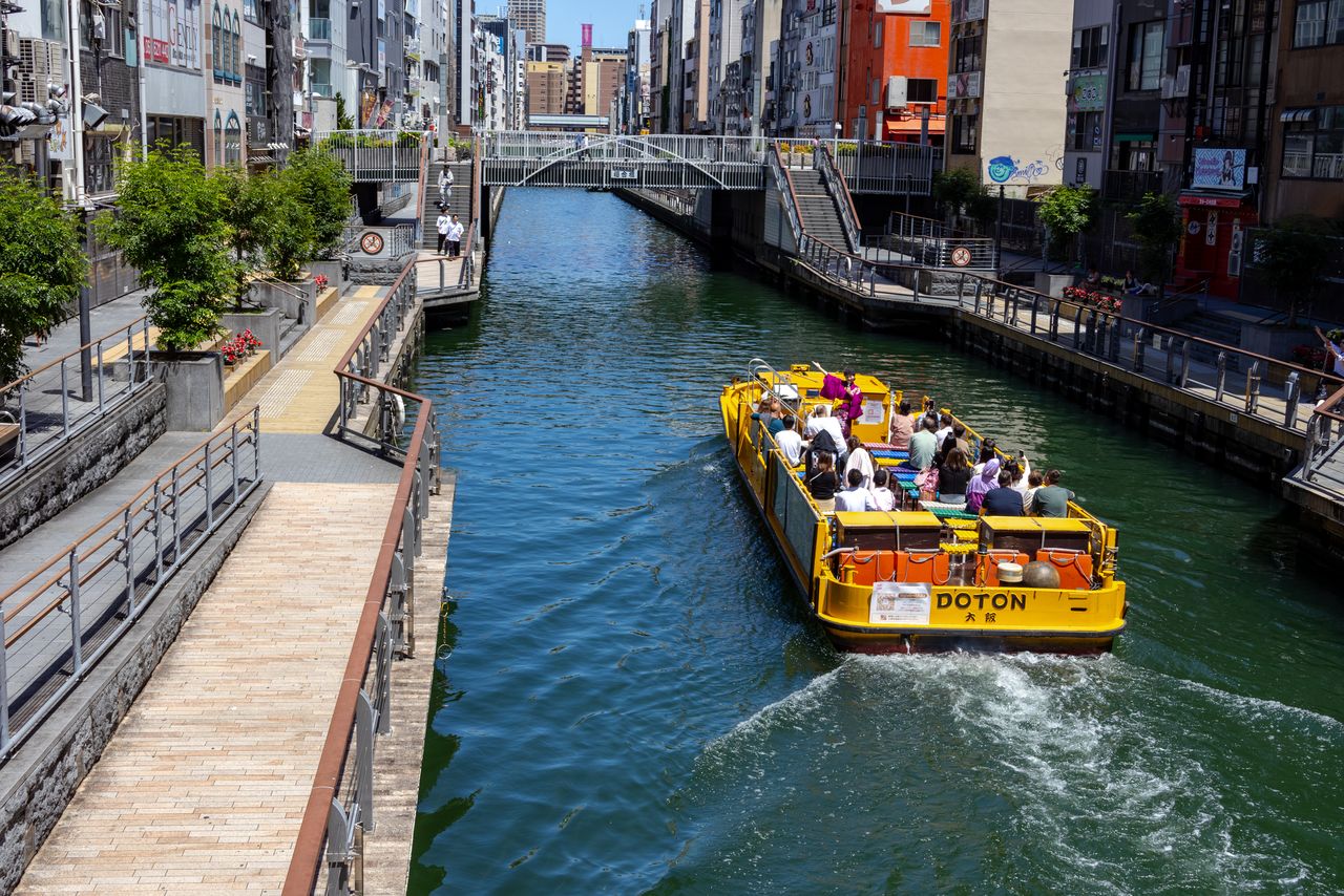 Los paseos en barco son posibles precisamente porque los niveles del agua están regulados por compuertas. El crucero Tonbori River Cruise, inaugurado en 2005, es una de las principales atracciones acuáticas y un símbolo de la revitalización del río Dōtonbori. Con él, el visitante podrá disfrutar de las embarcaciones y la tradición culinaria de la que fuera “cocina del país en