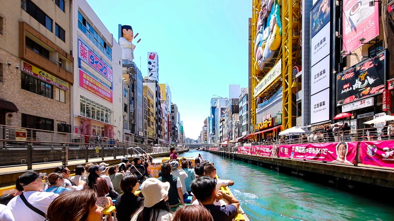 El paseo lo dirige un guía que habla en dialecto de Osaka. Por ejemplo, explica con mucho sentido del humor: “La palabra ōkini que aparece en aquel anuncio significa thank you (“gracias”, en inglés), kamsa hamnida (en coreano) o xie xie (en chino). Los ciudadanos que habitan en Dōtonbori son ‘verdaderos nativos de Osaka’ y ¡son muy amistosos!”. Tal como comenta el guía, la gente de Osaka se despide de ti hasta que te pierden de vista, o te llaman desde las tiendas en las orillas del río para que vayas después.