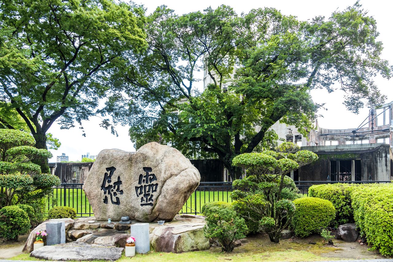 Un cenotafio conmemorativo erigido en la parte este de la cúpula. (© nippon.com)