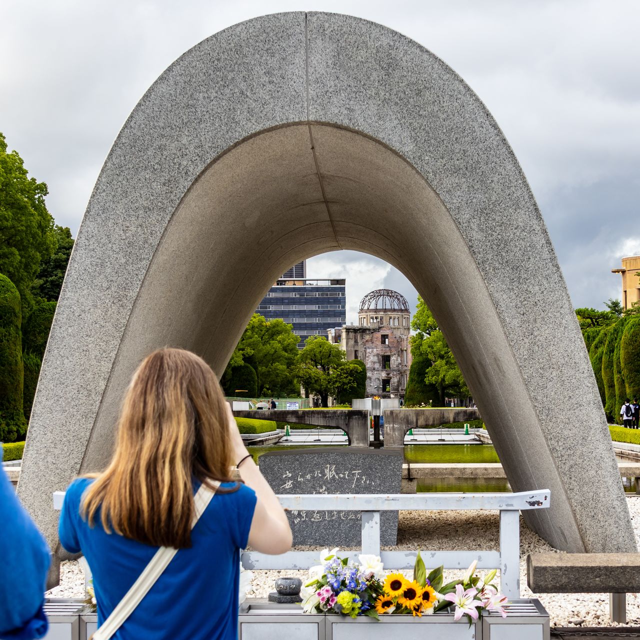 Al norte del cenotafio, con la cúpula al fondo, arde la Llama de la Paz, encendida el 1 de agosto de 1964 y que parpadea eternamente como símbolo de la esperanza en la paz y en un mundo libre de armas nucleares.
