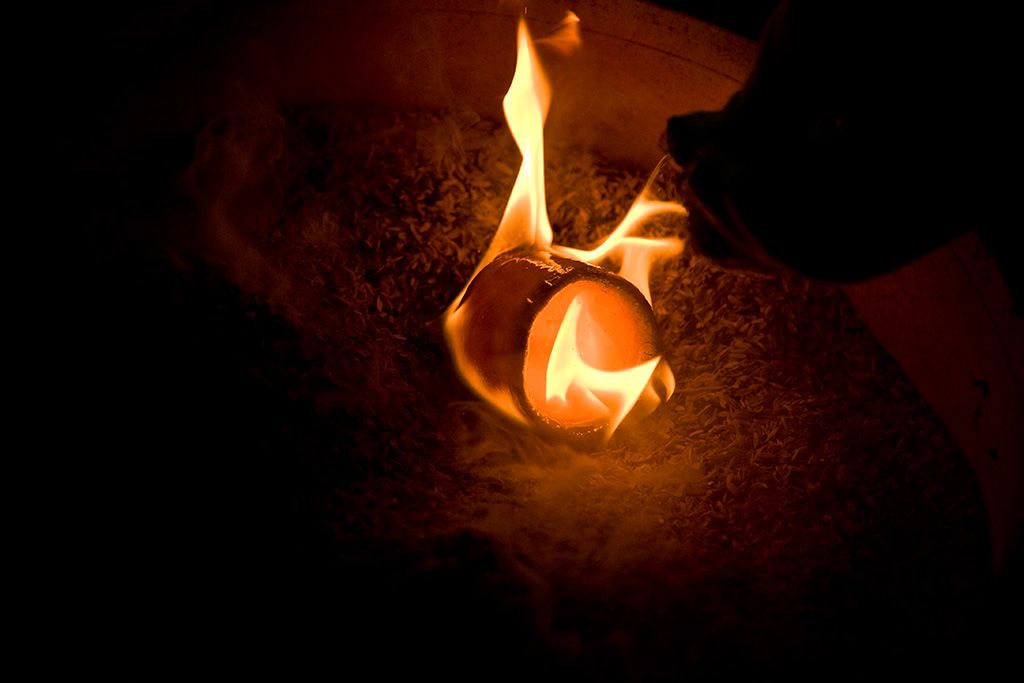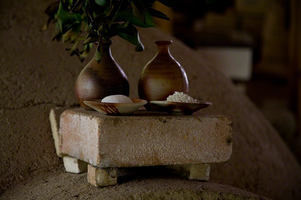 Isezaki nos contó: "Gracias a una interacción intensa y prolongada con las llamas, en el horno ocurren cambios inesperados que provocan el nacimiento de un variado registro de matices y expresiones. Sin embargo, no lo dejo todo al azar. En la cerámica de Bizen, la colocación de las piezas en el horno es un proceso muy importante dentro de su fabricación. Se calcula de antemano el recorrido de las llamas dentro del horno, dónde y cómo caerán las cenizas para determinar los lugares y el modo de colocar las piezas. Colocar una pieza en un horno equivale a encomendarse a los dioses. A veces nace un tipo de belleza imposible de alcanzar únicamente con la habilidad humana. Tenemos, por un lado, la intención del ceramista, y por el otro, las contingencias del fuego. Sólo cuando ambas partes coinciden armónicamente puede nacer una cerámica de Bizen satisfactoria".