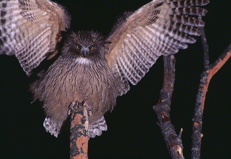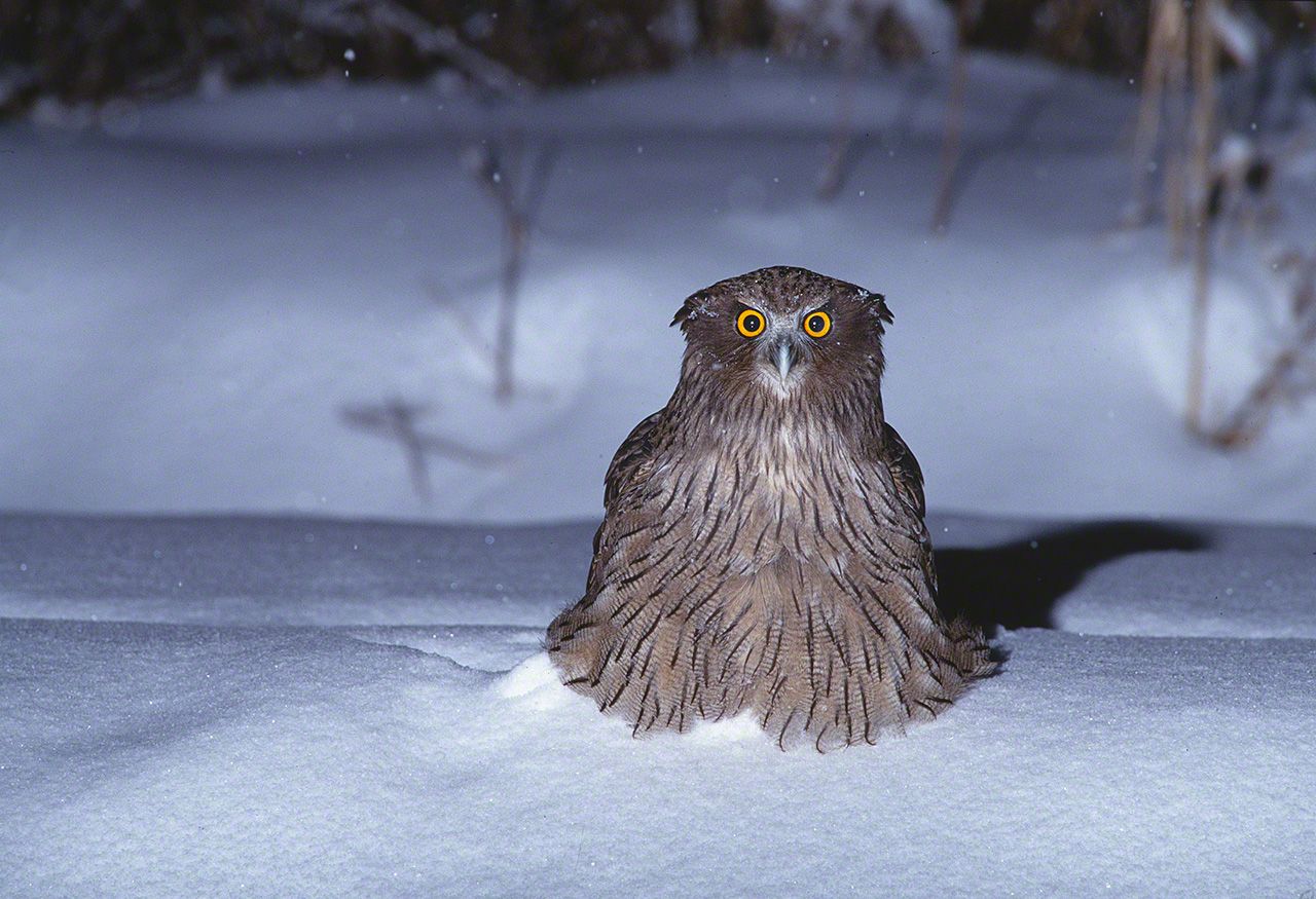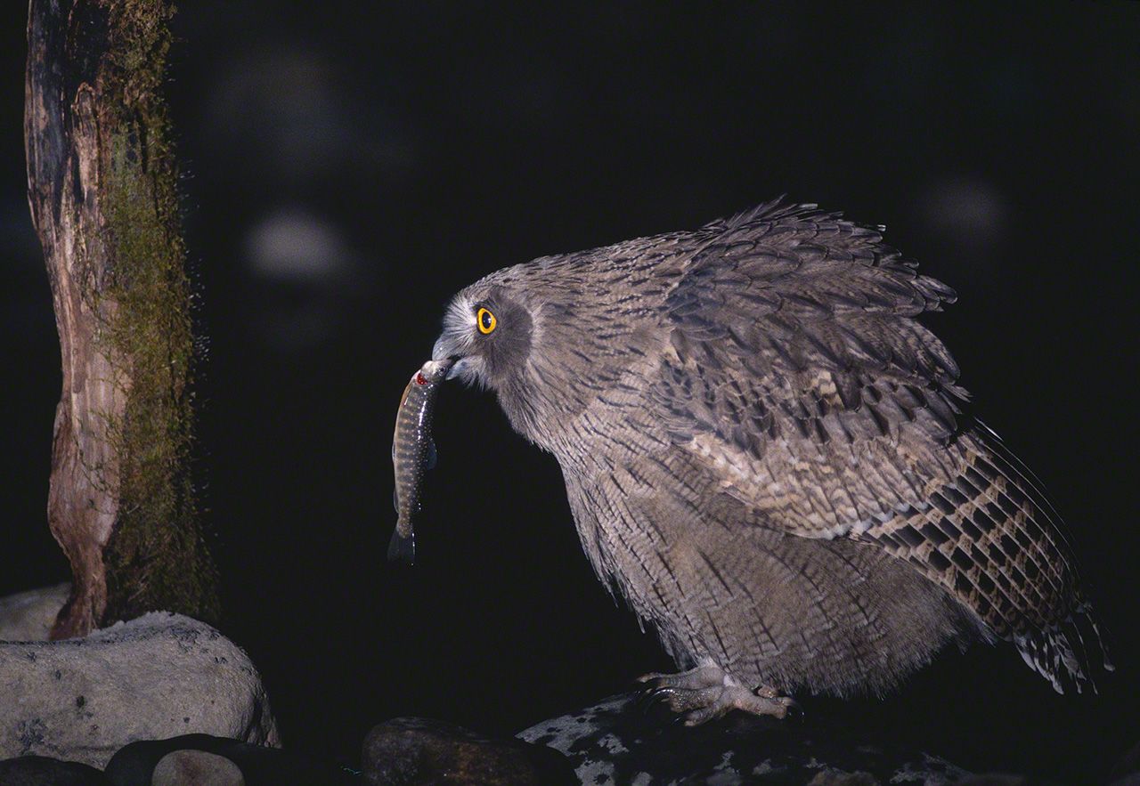 El búho manchú también es conocido como búho pescador de Blakiston. Haciendo honor a ese nombre, un ejemplar ha pescado lo que parece un salvelino del Pacífico norte.