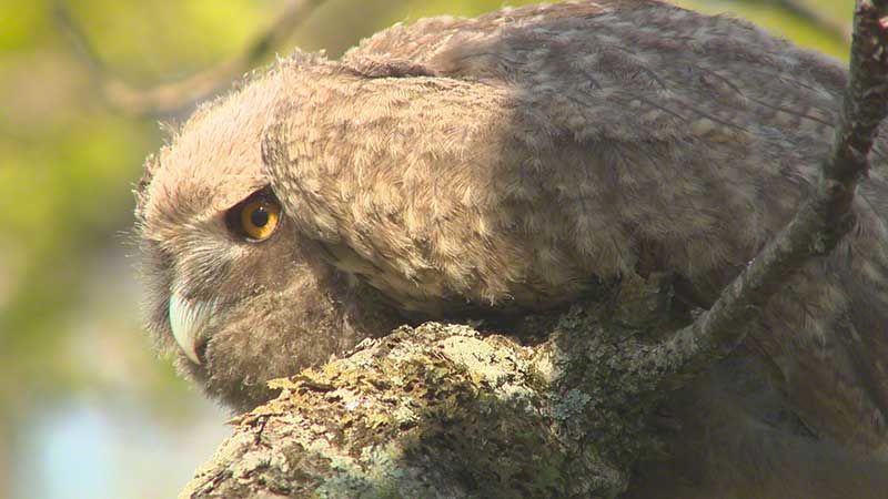 Un búho macho vigila los alrededores del nido.