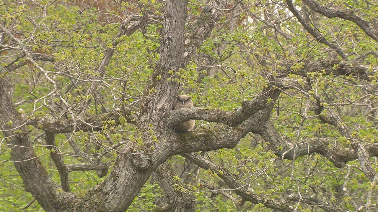 Una vez se derrite el hielo que cubría el río por completo, vuelve a oírse el agradable sonido del agua que fluye. Es la época en la que los polluelos del búho manchú salen del huevo.