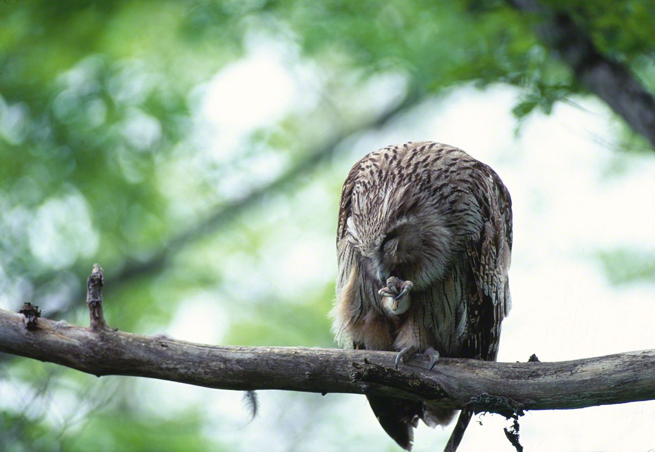 Una noche reuní el valor para adentrarme en lo más profundo del bosque y me encontré con un búho. Era 1990 y yo tenía 41 años. Hokkaidō, la región donde nací y crecí, es el hábitat natural del búho manchú, una especie declarada Tesoro Nacional de Japón y en peligro de extinción. El asombro de hallarme cara a cara con un ejemplar y su grandiosa presencia me impactaron de tal modo que me propuse captar su esencia mediante la fotografía.