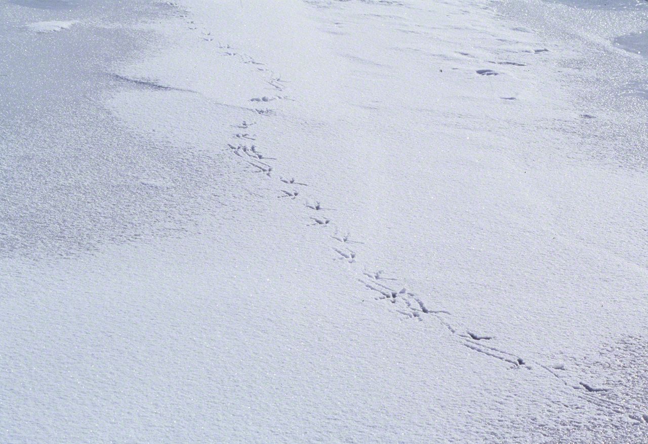 Después de una hora seguida de temporal, la nevada se detiene y la vista se despeja. En ese preciso instante una hembra de búho desciende ante mis ojos. Al aletear se llena el cuerpo de polvo de nieve.