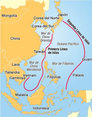 Dicha “capacidad” china comparte ciertos puntos con las estrategias que la URSS (Unión Soviética) adoptó durante la Guerra Fría, como el “control del mar”, o el “veto del mar”. En aquella época la URSS trató de crearse un santuario en el Mar de Ojotsk para sentar un precedente al vetar el acceso a dicho mar. En la actualidad China tiene establecidas dos líneas de defensa, las llamadas “Primera Línea de Islas” y “Segunda Línea de Islas”, y trata de crear una zona santuario en el Mar de China Meridional, el Mar de China Oriental y el Mar Amarillo. No es casualidad que China esté importando armamento que Rusia desarrolló y explotó durante la época de la Guerra Fría.