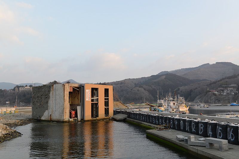 En el puerto de Onagawa, donde la tierra se hundió más de un metro tras el tsunami, la prefectura de Miyagi justo acaba de iniciar las obras para alzar el suelo y reconstruir la infraestructura portuaria. Abe Yoshihiko, capitán del ferry Shimanagi que conecta Onagawa con las islas circundantes, pudo retomar el servicio en agosto de 2011 tras la construcción de un muelle provisional. "La reconstrucción avanza a un ritmo muy lento. Creíamos que el muelle estaría terminado en cosa de un año, pero éramos demasiado optimistas." —comenta mientras se prepara para fletar su barco. "Los usuarios se han reducido a la décima parte tras el terremoto".