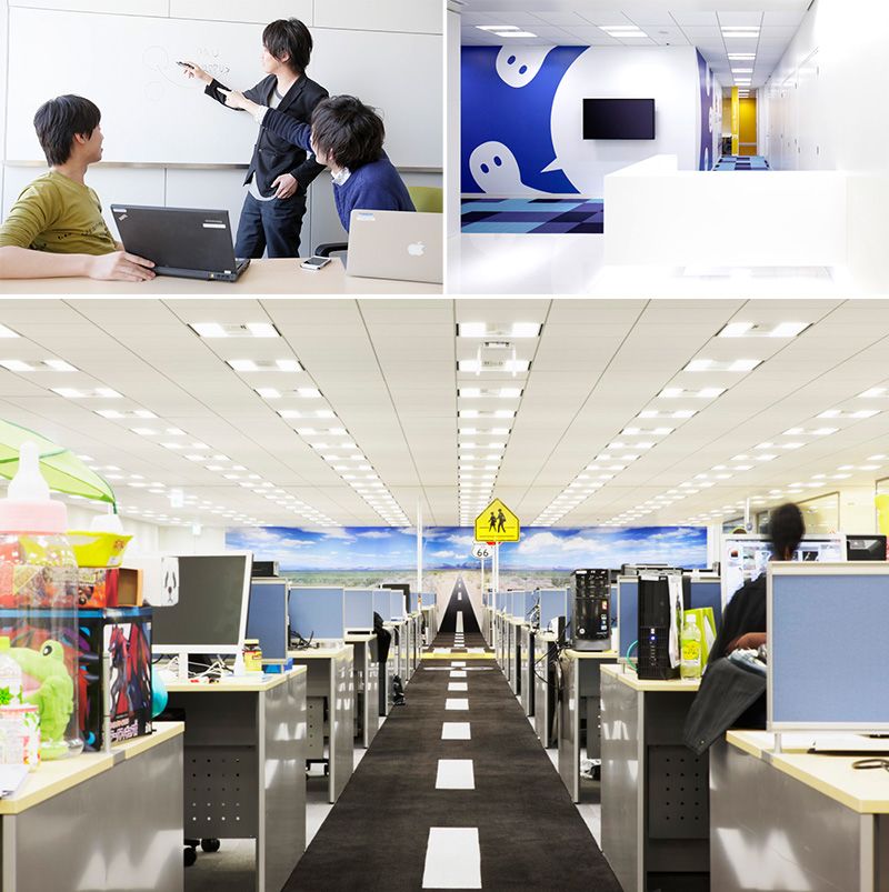 Las oficinas de la sede de Klab en Tokio. Entre sus éxitos para smartphone se cuentan títulos como Love Live! School Idol Festival, o Tenkū no Craft Fleet. En 2015 han lanzado Glee Forever! y BLEACH Brave Souls.