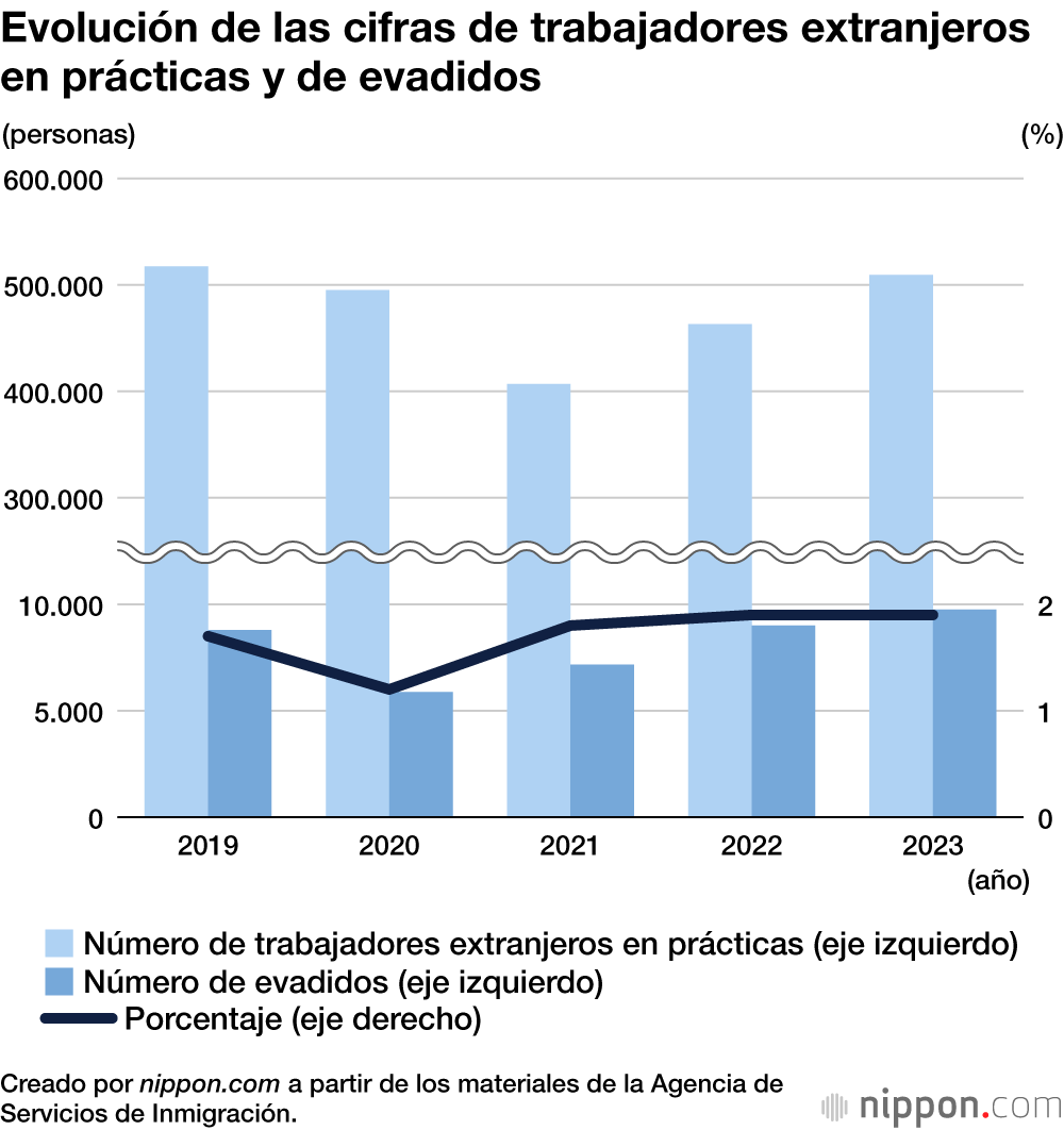 De todas formas, el informe afirma también que el nivel de cumplimiento normativo dentro del sistema adoptado por Japón es alto para los estándares internacionales. Se explica, por ejemplo, que en Japón desaparecen (se evaden) el 2 % de los trabajadores extranjeros en prácticas, y que aunque sumemos a estos desaparecidos los que han cometido otras infracciones de los reglamentos ni siquiera se alcanza el 4 % del total. Estos porcentajes son muy bajos, ciertamente, si los comparamos con el 18,9 % de infracciones reglamentarias detectadas bajo el sistema de permiso de empleo de Corea del Sur, con el 17,5 % del sistema seguido en Israel, o con el 10 % que se utiliza en Estados Unidos como umbral o criterio de exclusión de países concretos para la aceptación, entre otros, de los trabajadores estacionales (temporeros).