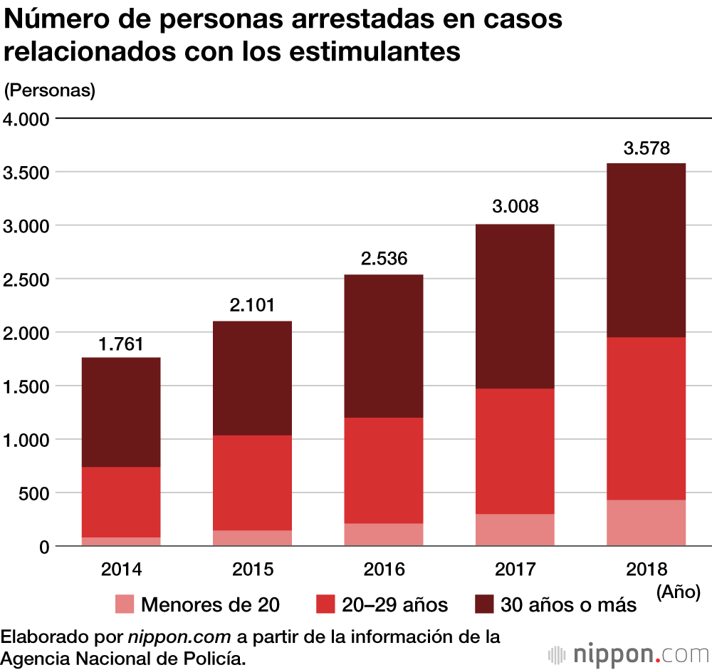 13.862 personas se vieron envueltas en los delitos conectados con el mundo de las sustancias estupefacientes y psicotrópicas registrados dicho año en Japón. Los casos relacionados con las drogas estimulantes fueron los más comunes, con 9.868 personas involucradas, un pequeño descenso respecto al año anterior. Aunque solo hubo 197 personas en casos relacionados con la cocaína, es más del triple que la cifra registrada en 2014.