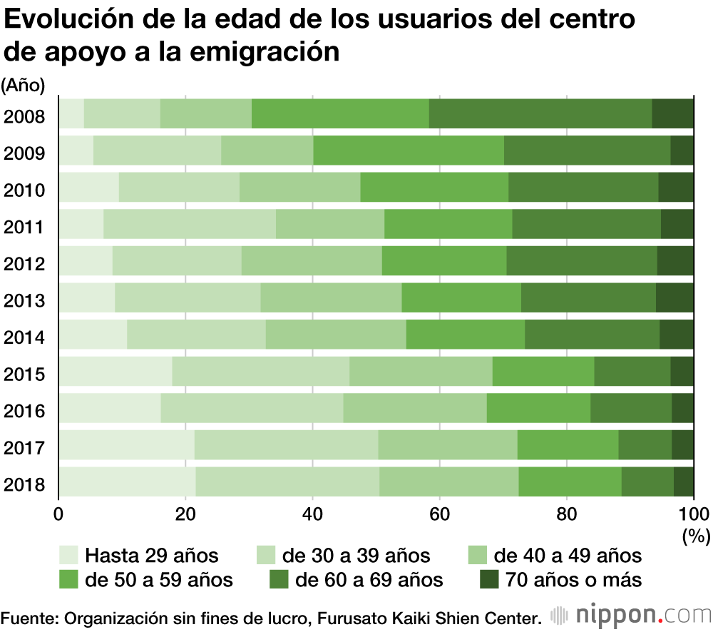 Cada vez más jóvenes en Japón se acercan al Furusato Kaiki Shien Center (Centro de Apoyo para Regresar a las Tierras Natales), organización que se encarga de asesorar a aquellos que desean trasladarse de grandes ciudades al interior del país. En el año 2008, aproximadamente el 70 % de las consultas eran de personas mayores de 50 años. Sin embargo, para 2018, los usuarios de entre 20 y 49 años habían superado el 70 %. Antes, muchas personas buscaban emigrar para disfrutar de la vida tras la jubilación, pero ahora las familias en edad laboral y de crianza están considerando mudarse a lugares que les ofrezcan mejores condiciones.