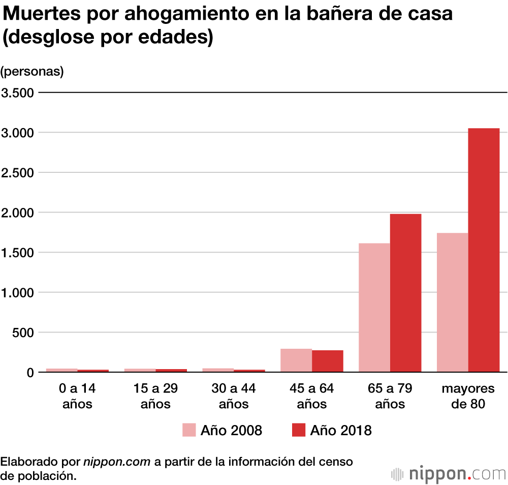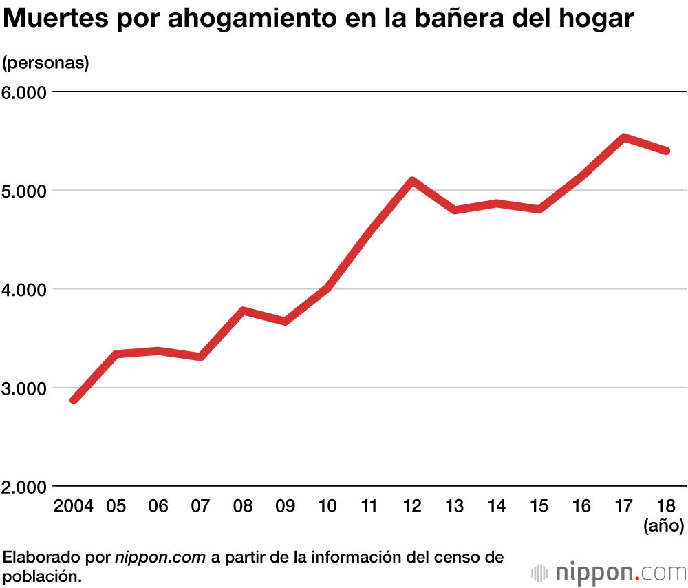 Según el censo de población del Ministerio de Salud, Trabajo y Bienestar de Japón, en 2018 murieron ahogadas en sus bañeras 5.398 personas. Fueron 138 personas menos que el año anterior, pero 260 más que en 2016. En el año 2004, el número de estas muertes fue de 2.870. En ese período de 15 años el número de decesos por esta razón casi se duplicó y en los últimos años la cifra anual se ha mantenido cerca de las 5.000.