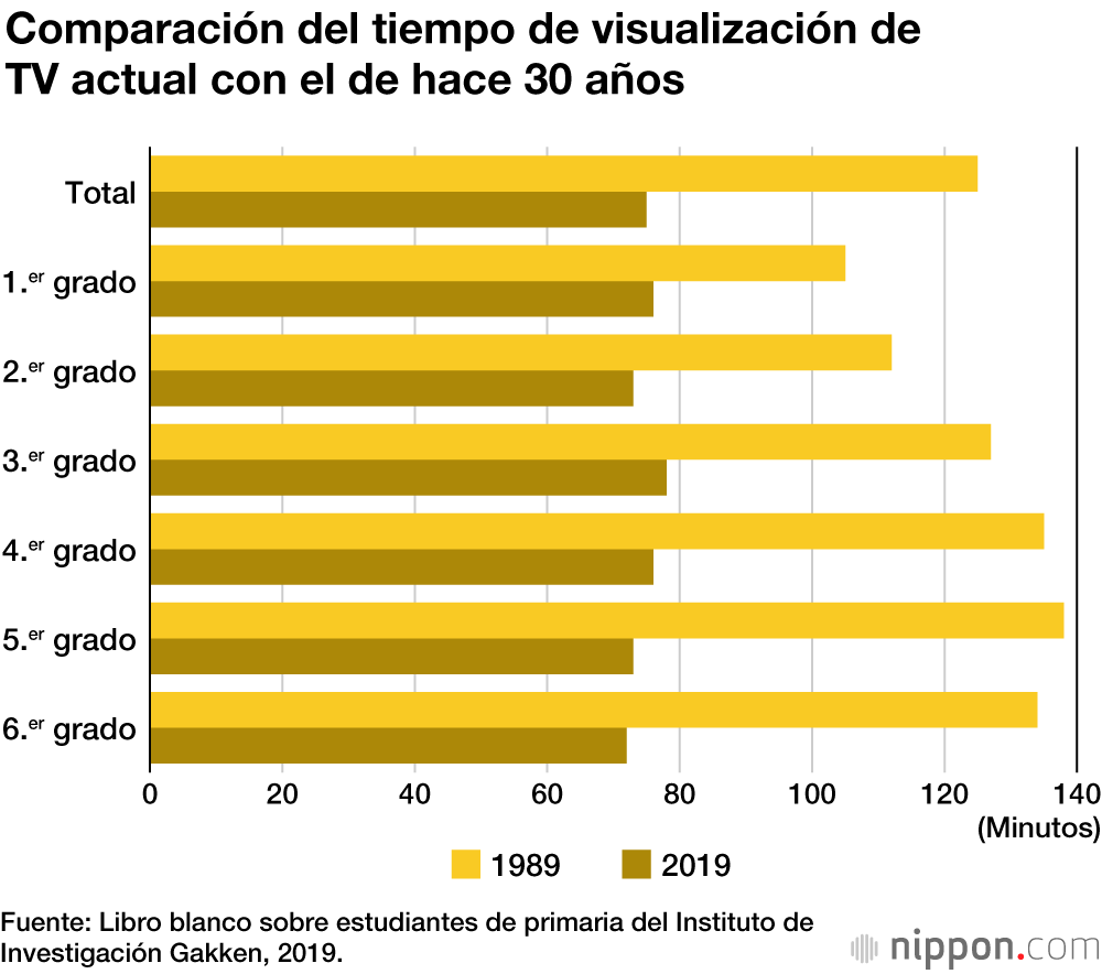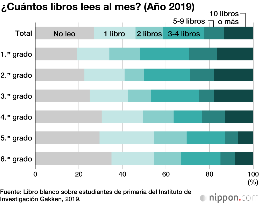 Hace 30 años, en una encuesta de 1989, los estudiantes de primaria leyeron un promedio de 9,1 libros por mes para todos los grados; esto significa que el número de libros leídos ha disminuido hasta un tercio. En la encuesta de 1989, a diferencia de la encuesta de 2019, el volumen de lectura fue mayor para los alumnos de tercer grado en adelante, con un promedio de 10 o más libros por mes.