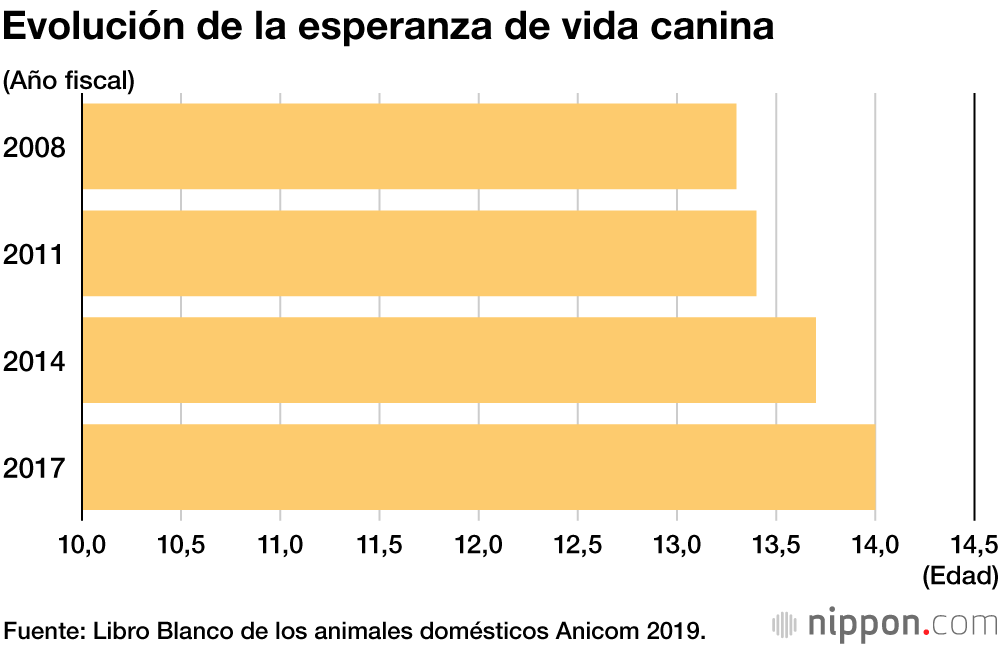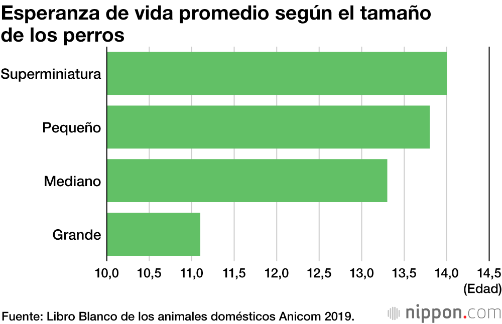 En el año 2017, la esperanza de vida promedio de los perros asegurados por Anicom fue de 14 años. Las mejoras en la medicina veterinaria, la alimentación y las circunstancias caninas han motivado que la esperanza de vida de estos animales aumente de manera gradual. Los perros pequeños y superminiatura viven aproximadamente tres años más que aquellos de razas grandes. Como las mascotas se han convertido en un miembro más de la familia y la mayoría de los dueños desea que vivan más años, esto también ha influido en la popularidad de las razas pequeñas.