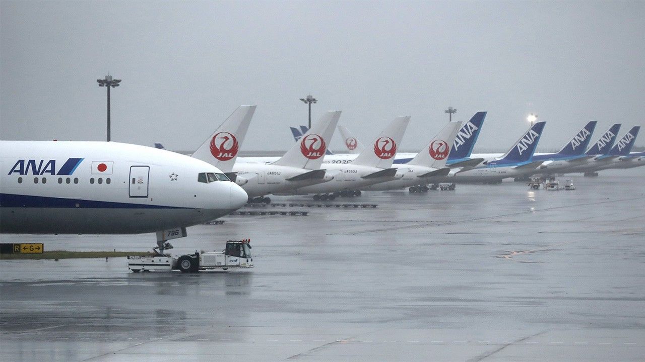 Fotografía del encabezado: aviones parados tras la cancelación de varios vuelos en el aeropuerto de Haneda. (Jiji)