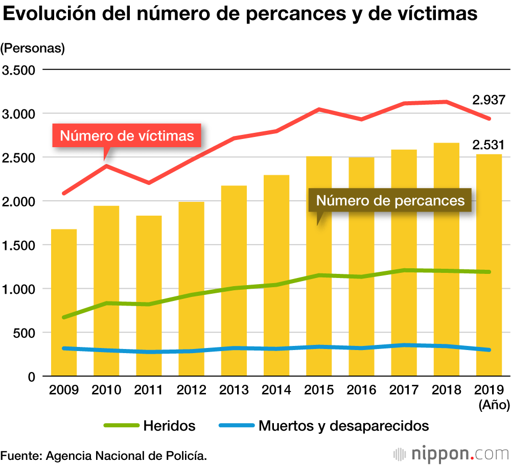 Según la Agencia Nacional de Policía, en 2019 se produjeron 2.531 percances en la montaña con 2.937 víctimas. Aunque el número de percances y el de personas disminuyó en comparación con 2018, año en el que se registró la cifra más alta desde 1961, el nivel continúa siendo elevado.