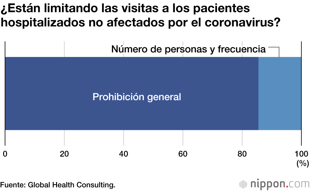 En respuesta a esta situación, el 85,5 % de los hospitales declararon que las visitas a los pacientes hospitalizados estaban en principio prohibidas, y el 14,5 % restante adoptó medidas como la limitación del número y la frecuencia de las visitas para evitar la propagación de la infección.