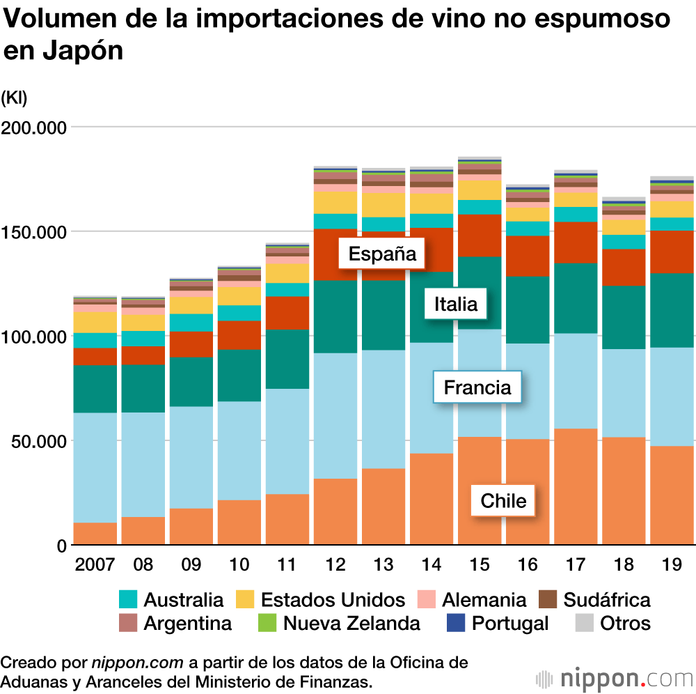 La eliminación de los aranceles también ha contribuido a que aumenten las importaciones de vino de Francia, Italia y España, que han crecido un 10 % respecto al año anterior. No obstante, Chile ha superado a Francia y se mantiene como el mayor exportador de vino no espumoso en Japón por quinto año consecutivo.