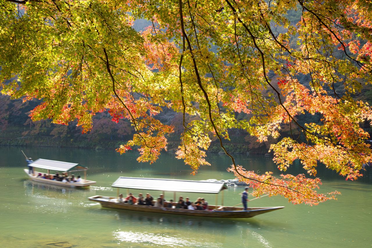 Aquí podrá sentirse por un tiempo como un aristócrata del período Heian admirando el follaje otoñal desde una barca conocida como yakatabune.