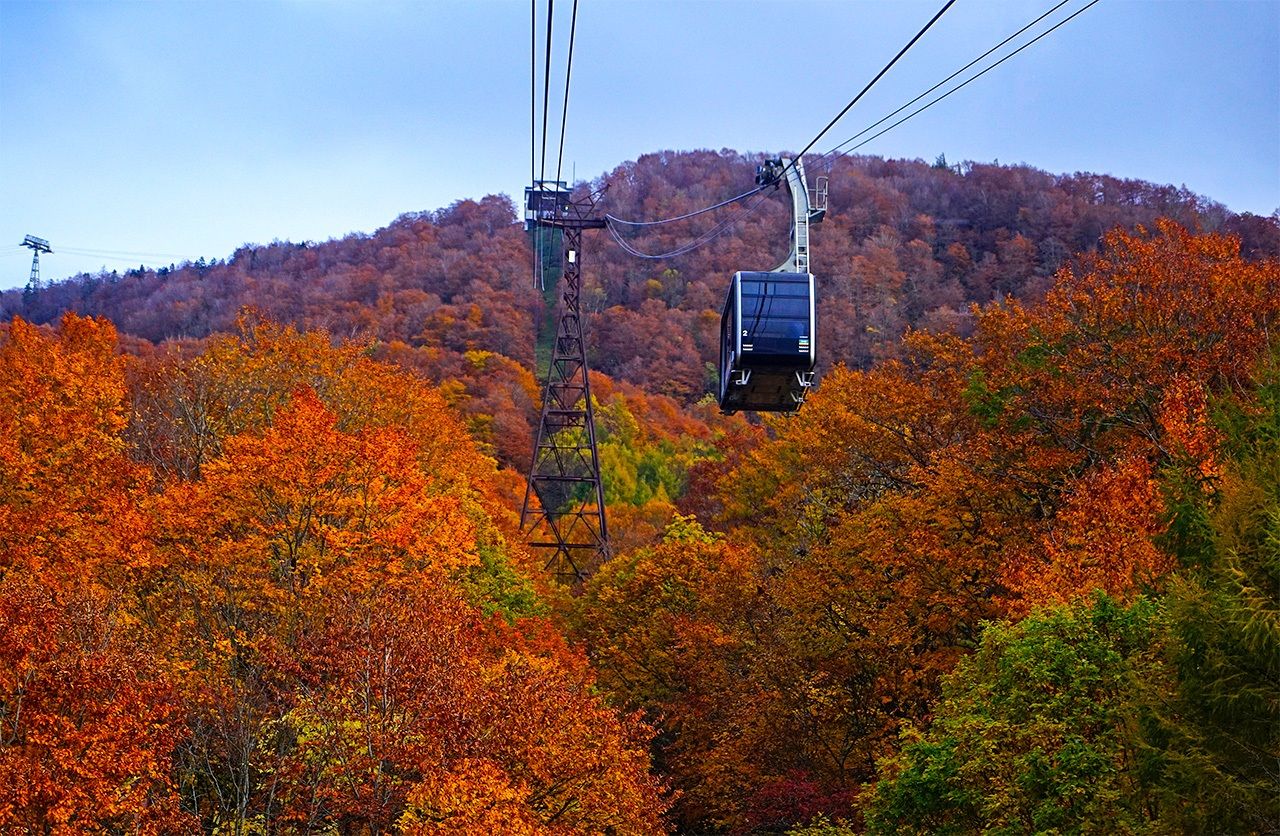 Esta magnífica vista panorámica de 360 grados del follaje otoñal desde el cielo solo la puede proporcionar un teleférico. También se puede disfrutar de los distintos colores que muestran las hojas, ya que cambian según la diferencia de altura entre la estación de Zaō Sanroku (855 m) y la estación de Jizō Sanchō (1.661 m).