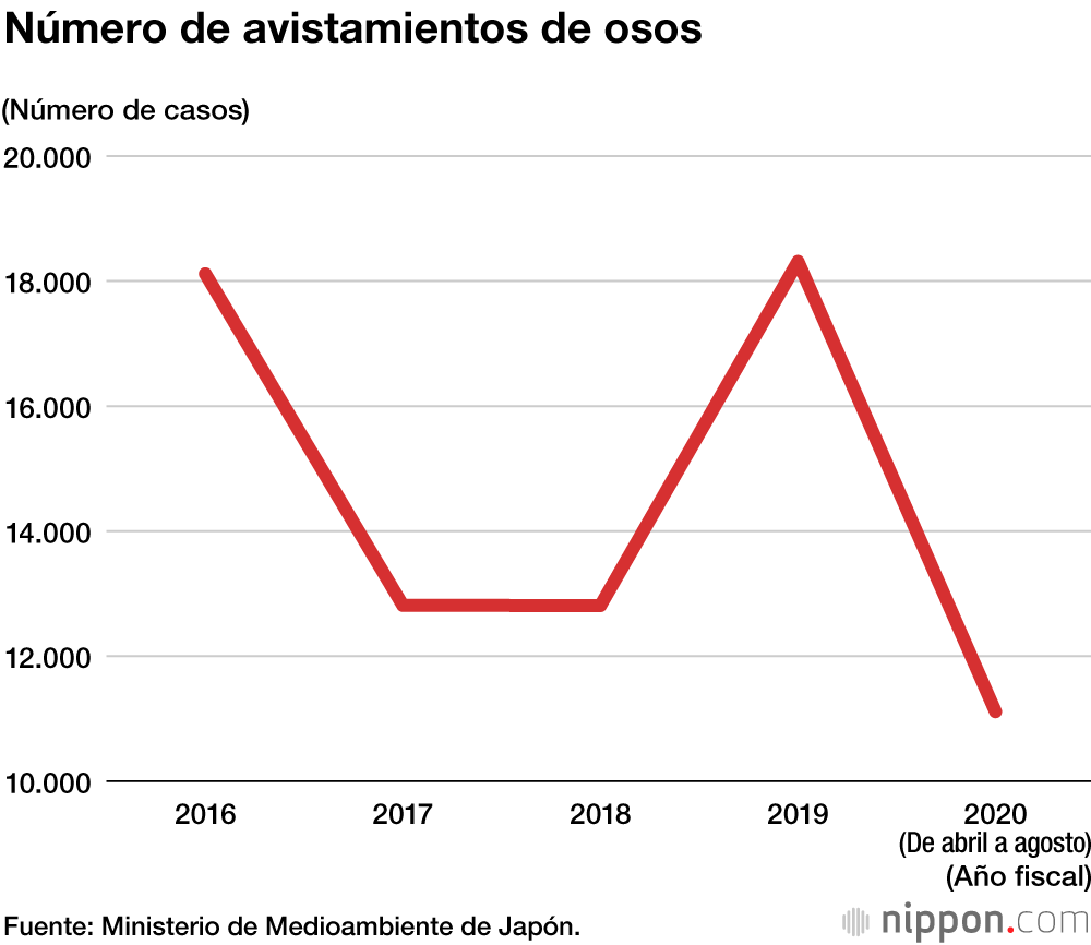 Una encuesta del Ministerio de Medioambiente revela que en el año fiscal 2019 (de abril de 2019 a marzo de 2020) se registraron 18.314 informes de avistamiento de osos en el país, excluyendo a Hokkaidō, lo que supone un aumento de más del 40 % con respecto a las 12.809 del año fiscal 2018. En los cinco meses que pasaron hasta finales de agosto en 2020 ya se habían avistado 11.112 osos en Japón.