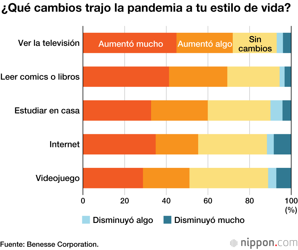 Cuando se les preguntó acerca de los cambios que la pandemia trajo a su estilo de vida, aproximadamente el 70 % dijo que ahora dedica más tiempo a ver la televisión y a la lectura y un 60 % dijo que ahora estudia más en casa. Con respecto al hecho de que ahora pasan más tiempo en casa, aproximadamente el 70 % dijo que se sentía muy feliz o relativamente feliz ante esta situación. Esto nos revela que los niños están adaptándose con flexibilidad a los cambios.