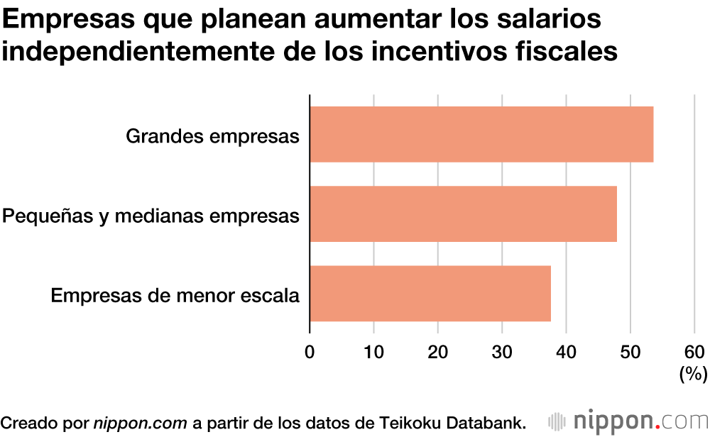 En total, el 53,6 % de las grandes empresas y el 47,9 % de las pequeñas y medianas empresas contestaron que aumentarían los salarios independientemente del alcance de los incentivos fiscales. En contraste, solo el 37,6 % de los negocios de menor escala, con una base financiera relativamente débil, dijeron que no planeaban aumentar las remuneraciones.