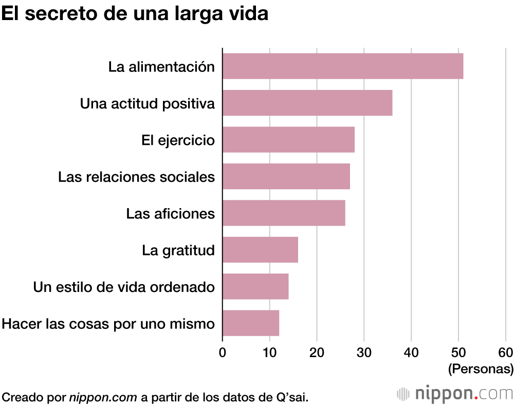 Desde 2016, la empresa Q’sai (ciudad de Fukuoka, Japón) realiza una encuesta anual a 100 personas sanas de 100 años o mayores (excluyendo a las que están postradas en una cama u hospitalizadas) y a sus familias para saber cómo viven.