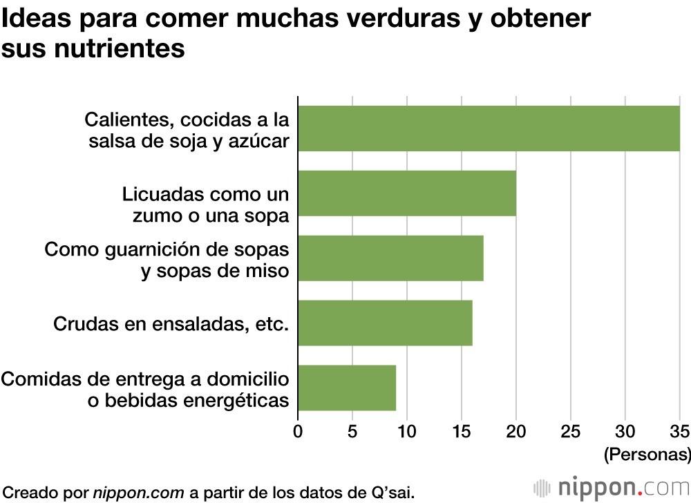 Para comer muchas verduras, numerosas personas las cocinan para que sean más fáciles de masticar: las calientan, las cuecen con salsa de soja y azúcar o las convierten en líquidos como zumos o sopas.