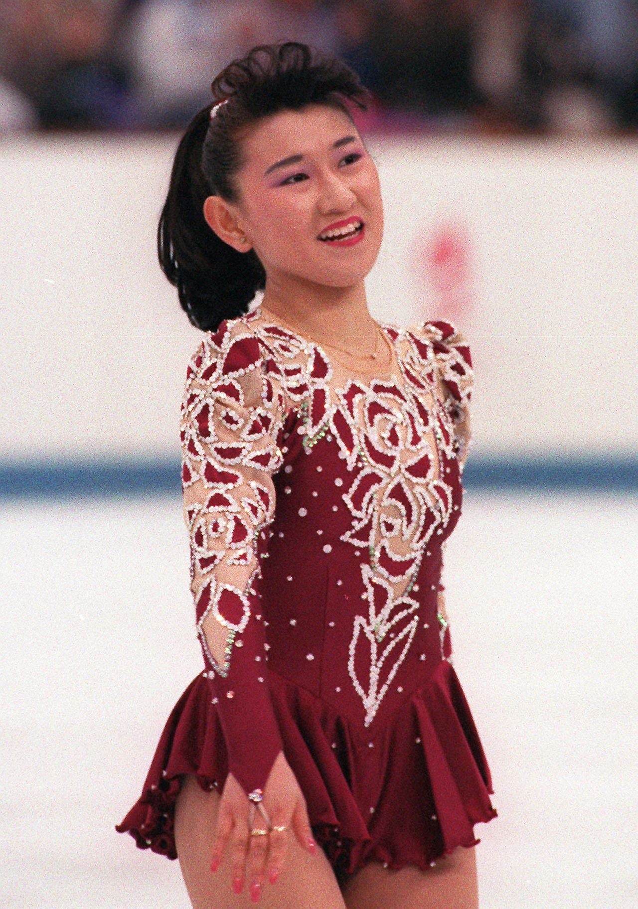 Con un cuerpo pequeño de 145 cm, realizó saltos con la misma altura y tiempo de permanencia aérea que los hombres, llevando el patinaje artístico femenino a una nueva era. En la Copa NHK de 1988, se convirtió en la primera mujer en realizar con éxito un triple axel en una competición internacional, y en los Campeonatos del Mundo de 1989, fue la primera mujer japonesa en alzarse con la victoria en una competición mundial con la misma técnica.