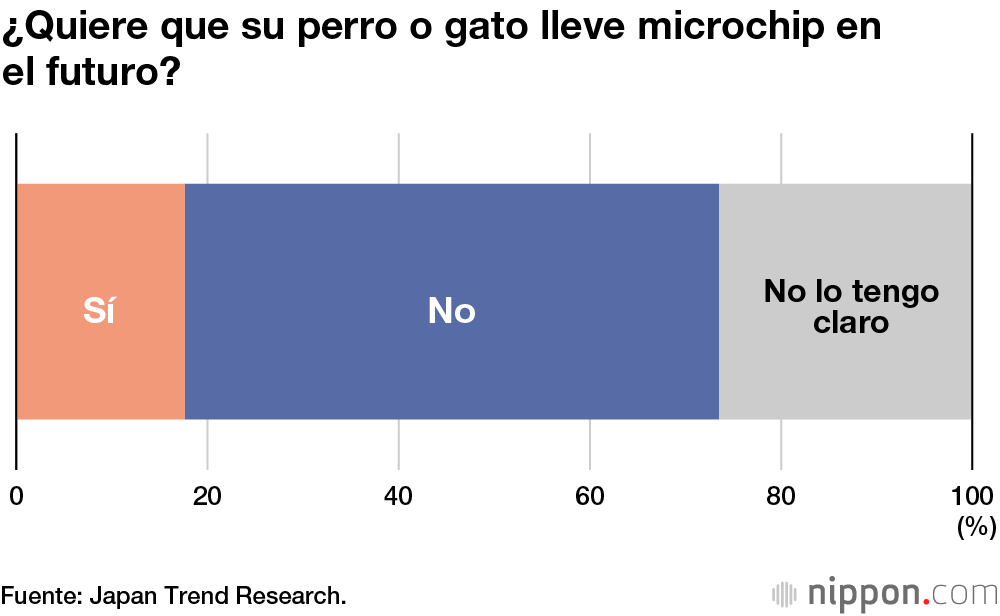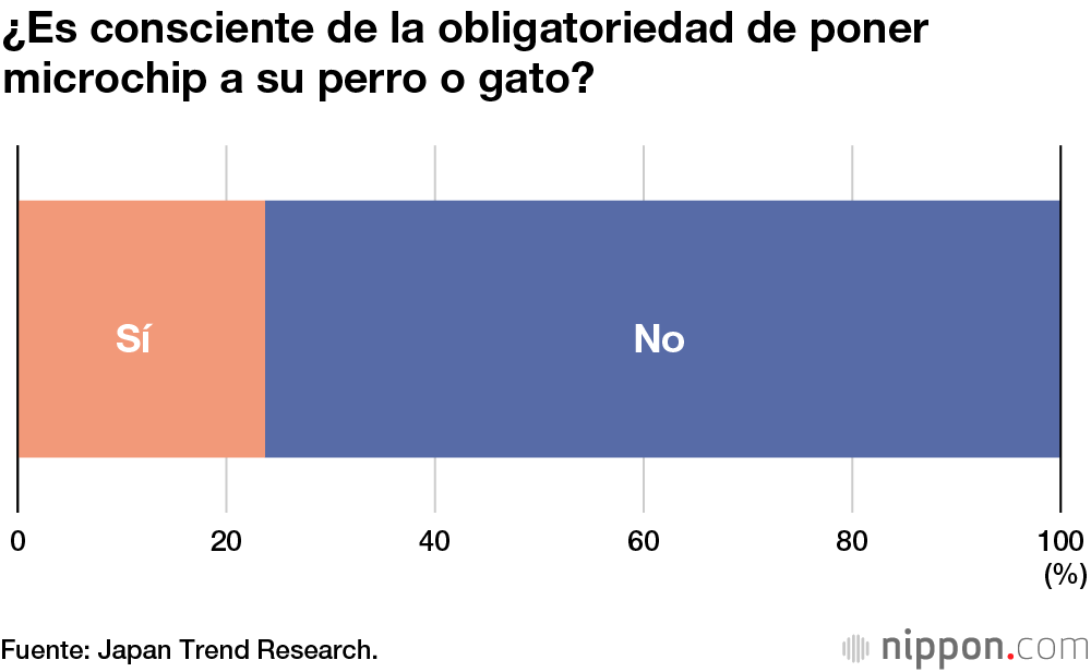 Cuando Japan Trend Research (gestionado por la empresa NEXER) preguntó a 2.000 personas a través de un sitio web de encuestas si conocían la obligatoriedad del microchip, el 76,3 % de los encuestados dijo no saberlo, lo que sugiere que la información sobre la revisión de la ley apenas ha llegado a la población.