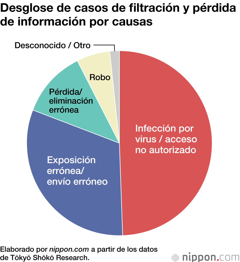 La empresa dedicada a los sondeos Tōkyō Shōkō Research calcula que en 2021 hubo un total de 137 casos de filtración o pérdida de información personal en las empresas que cotizan en bolsa y sus filiales, 34 más que el año anterior. El número de ellas que hicieron públicos estos incidentes aumentó en 32 en comparación con el año anterior, hasta llegar a las 120. Tanto el número de incidentes como el número de empresas fueron los más altos en los últimos diez años desde que comenzó a realizarse la encuesta en 2012. Desde ese año se han registrado un total de 925 casos en 496 empresas, y según el informe se calcula que podría haberse filtrado o perdido información personal de 119,79 millones de personas, una cifra casi equivalente a la de la población de Japón.