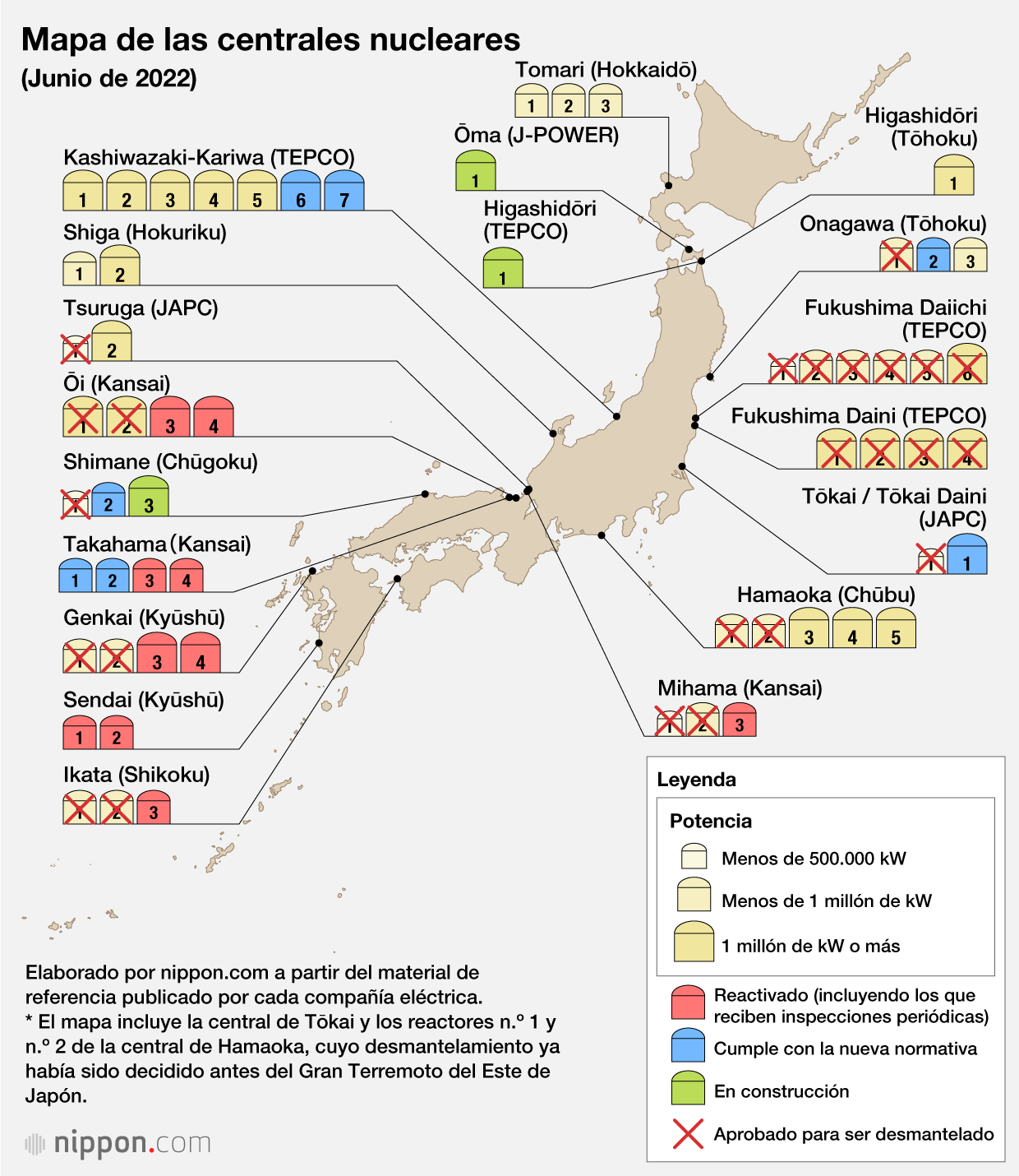 Mapa de las centrales nucleares de Japón, edición de 2022