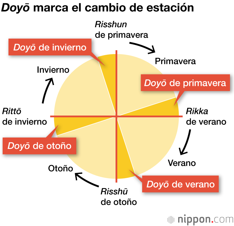 Doyō es un término que hace referencia a período del cambio de las estaciones. Según el calendario lunisolar tradicional, los 18 días que preceden inmediatamente al risshun (primer día de la primavera), rikka (primer día de verano), risshū (primer día de otoño), rittō (primer día de invierno), pertenecen al periodo doyō. En 2022, el primer día de otoño cae el 7 de agosto, por lo que el doyō de verano durará del 23 de julio al 6 de agosto. Según el calendario tradicional, este período coincide con el final del verano.